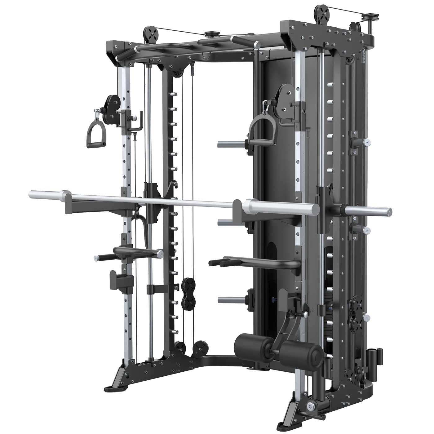 El sistema smith estable y confiable proporciona rieles fijos para ayudar a los usuarios a bajar mientras estabiliza las posiciones de entrenamiento con el peso inicial